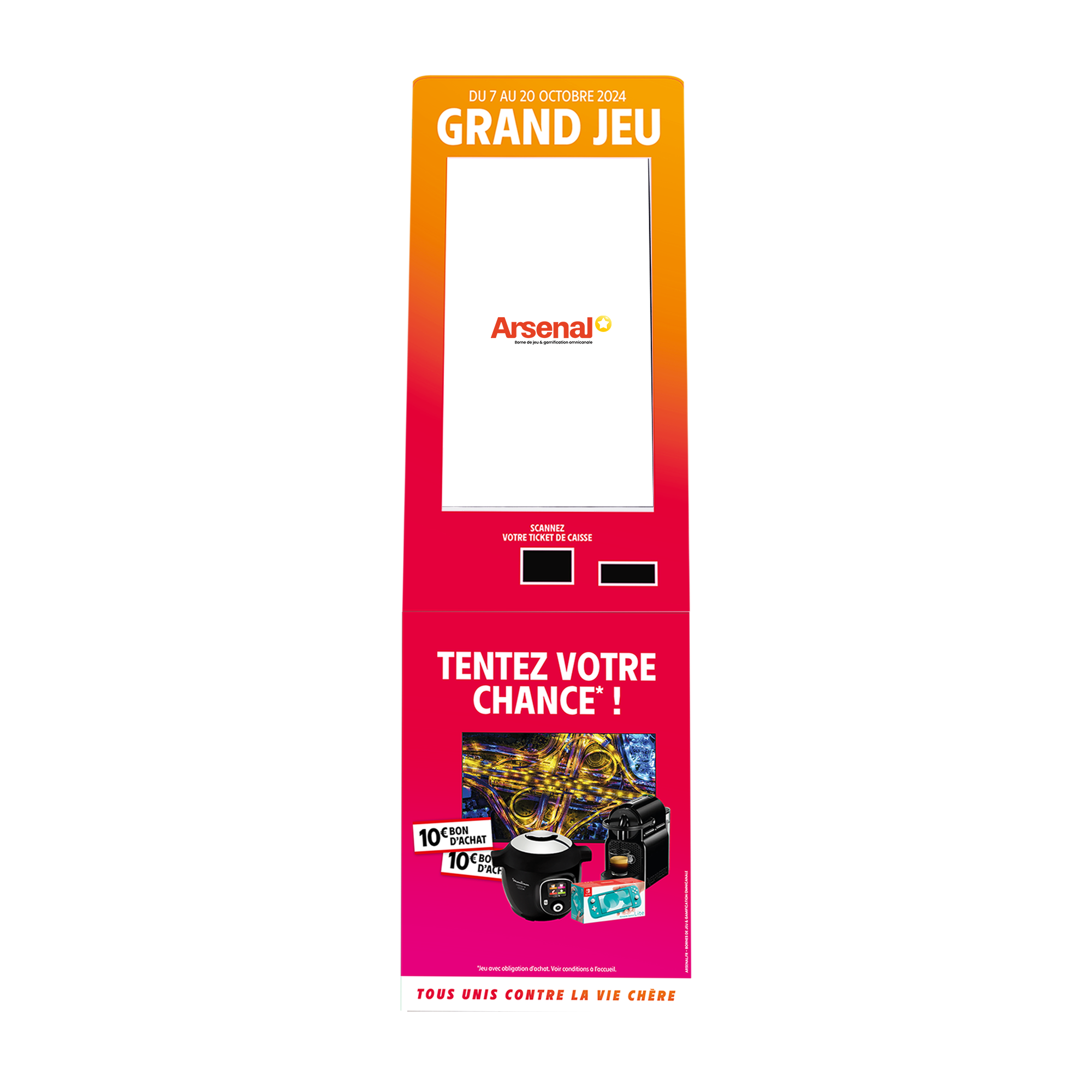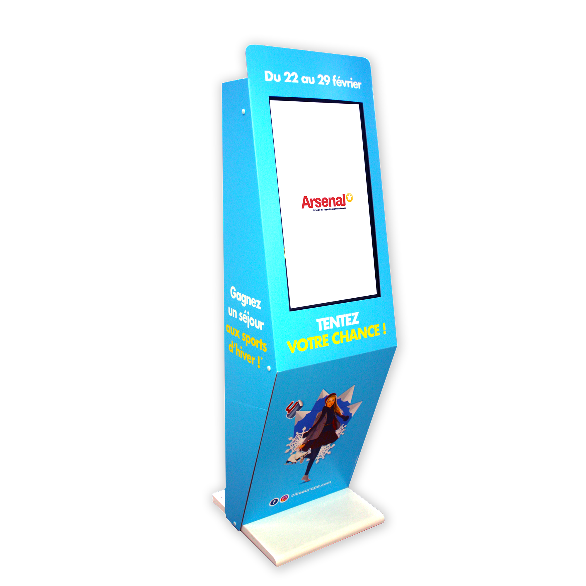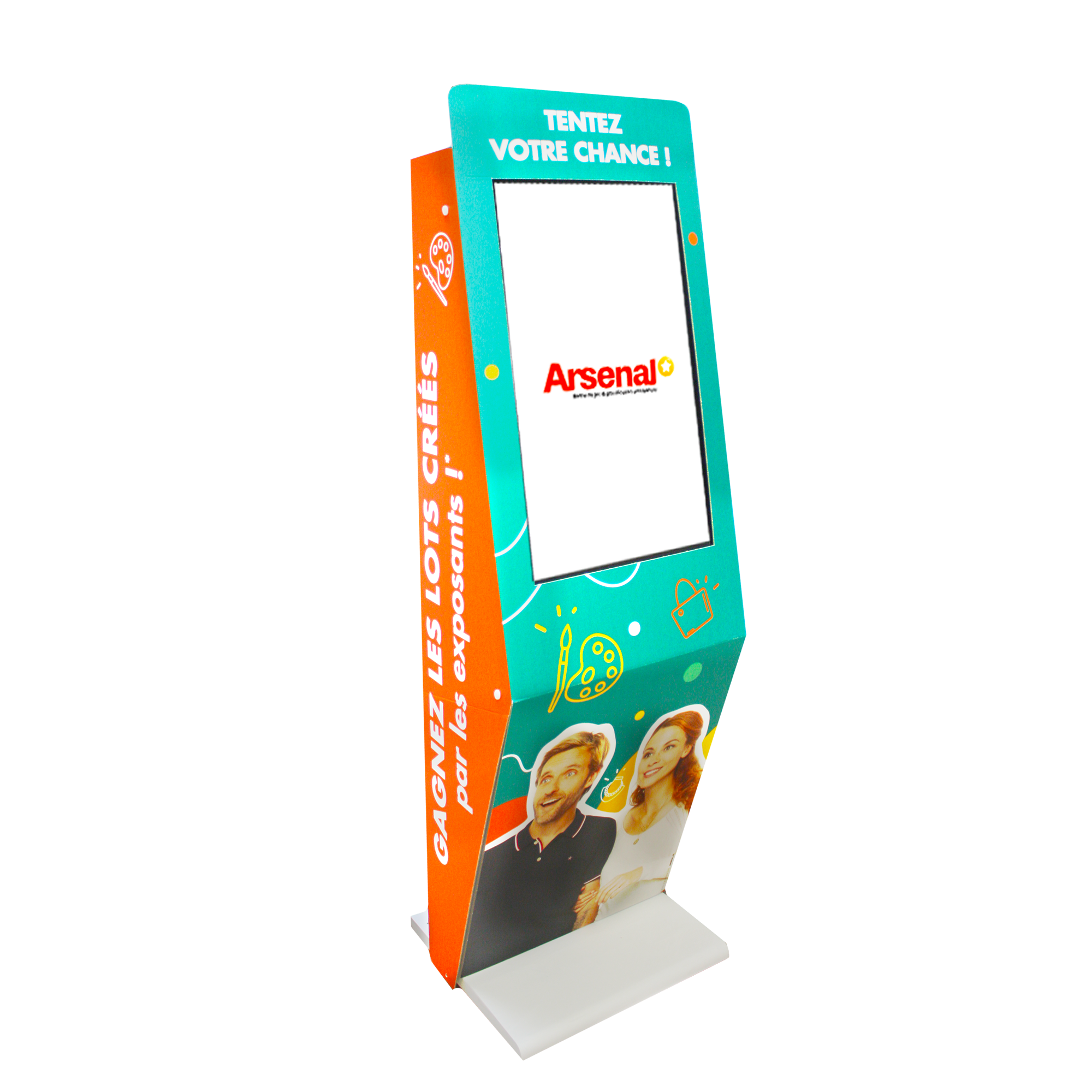 La borne de jeu 32 pouces offre une expérience immersive avec son écran Full HD ultra-lumineux et son design ergonomique. Son grand format capte l’attention, prolonge l’interaction et intègre une multitude de points de contact, parfaitement alignés avec vos objectifs de contactabilité. Habillée d’un carton recyclable sur mesure, elle assure une communication 360° tout en étant écoconçue. Son système Plug & Play garantit une installation rapide et une prise en main fluide.
